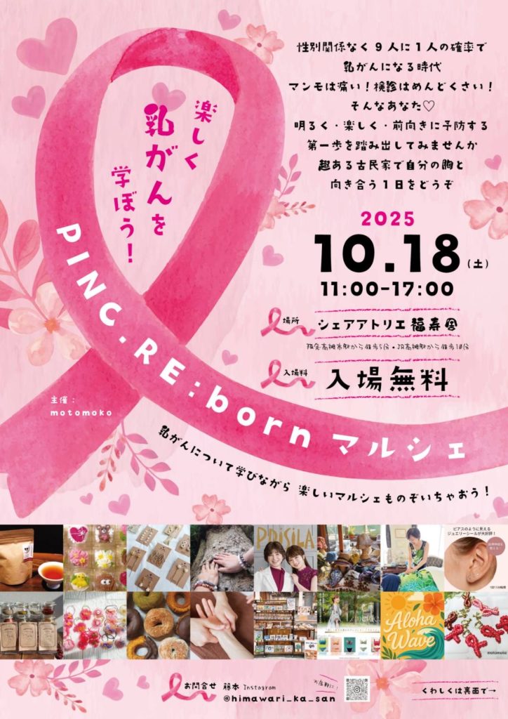 We will be participating in an event to learn about breast cancer at Share Atelier Fukujusha in Takatsuki City, Osaka.